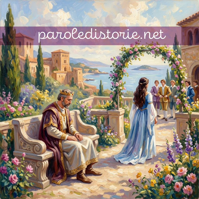 In una notte di tempesta, una nave che passava di lì fu travolta dalle onde del mare e andò a conficcarsi sulle rocce della costa proprio nel punto in cui sorgeva l’abitazione della fanciulla. I suoi genitori videro con preoccupazione arrivare nella loro casa uomini di cui non conoscevano neanche la lingua, ma si tranquillizzarono non appena arrivò il capo dei naufraghi, il sultano d’Atlantide, che chiese loro ospitalità.